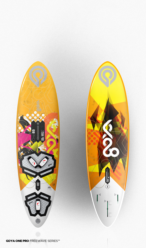 The new Goya 1 is fantastic. Rode it with my 4.7 Boxer with various amounts out downhaul throughout the day. Sustained wind was 25 to 29 knots, with gusts/lulls +/- 3 to 5 knots. I tried the Goya against the RRD FSW 90 and the Goya won : ) Goya is far faster! It accelerates like a rocket. RRD seems to be stuck in a tar pit by comparison. (I think that the double concave v bottom on the goya vs. a flat bottom on the red). As far as maneuverability, I would say they're comparable despite the Goya carrying around an extra 15 liters of volume. Thruster goes upwind just fine and the shorter center fin allows me to ride closer to shore. All in all, I love this new board : )