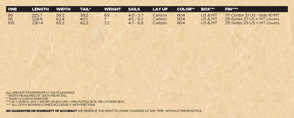 Hola, yo tambien quisiera conseguir la Goya ONE de 95 ltrs con trifin, tiene una pinta increible, nada que ver con la del año pasado en cuanto a diseño.