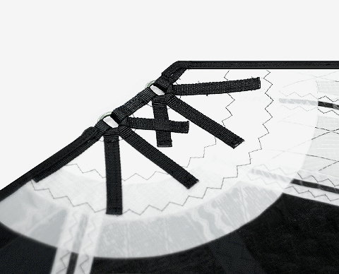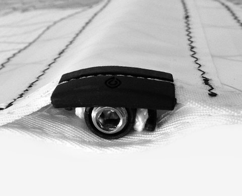 The new tack fairing design and material supplies massively improved abrasion protection and cushion, while making it very convenient to rig your sail, allowing for easy access to all areas of interest. The small grooved polygon tiles make it easy to fold the fairing up while adjusting your downhaul.