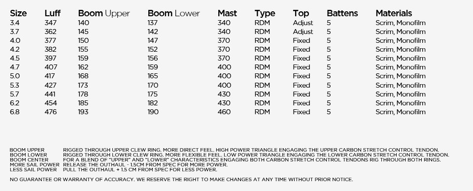 Love this sail! Does everything I need it to. Good full bottom for power. Fairly fast and stable on the top end Extremely disappointed that it has been discontinued. Wish I had bought a full quiver of them.