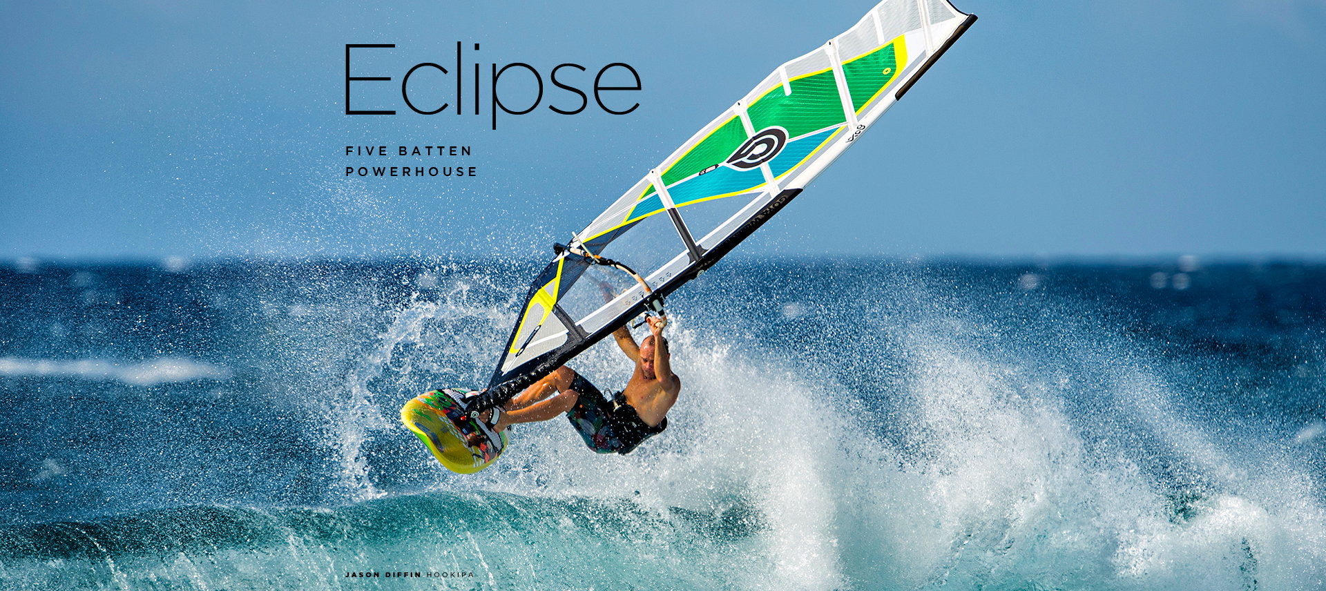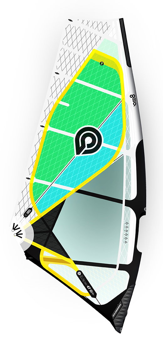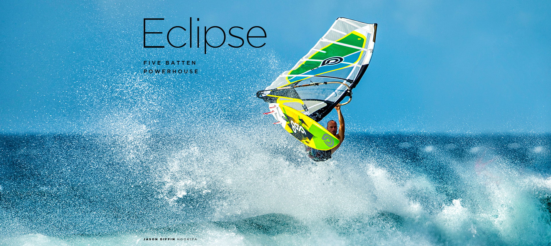 The new Eclipse has great low end power, sports easy handling and massive high wind range plus an unlimited speed potential. Five battens make the Eclipse a very stable sail with super easy handling when very powered up.