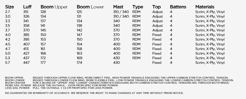 The Guru can take a massive pounding like no other sail. Essentially this description could end right there as no other words describe the Guru’s core better. But wait, the new Guru is a thorough evolution of a classic design. Smooth and easy power delivery, great low end torque, easily neutralized.
