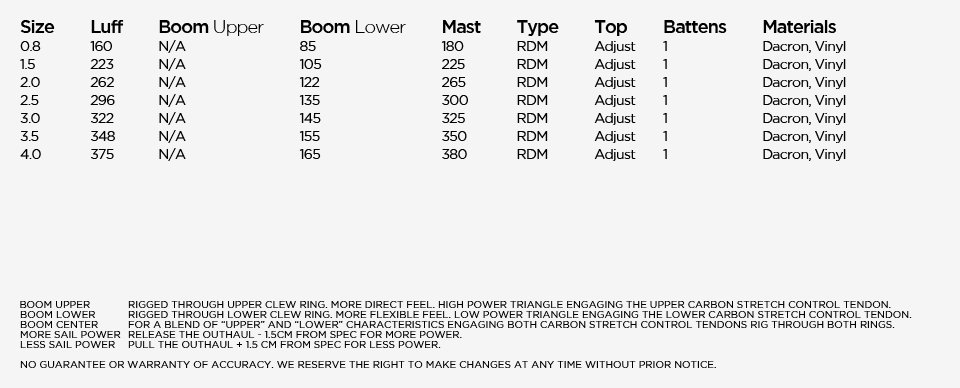 The Surf is a soft, luffable classic dacron trainer sail for flat water windsurfing. Dacron and Vinyl make for a very durable sail that’s fine with being left rigged and on the spot for extended periods of time.