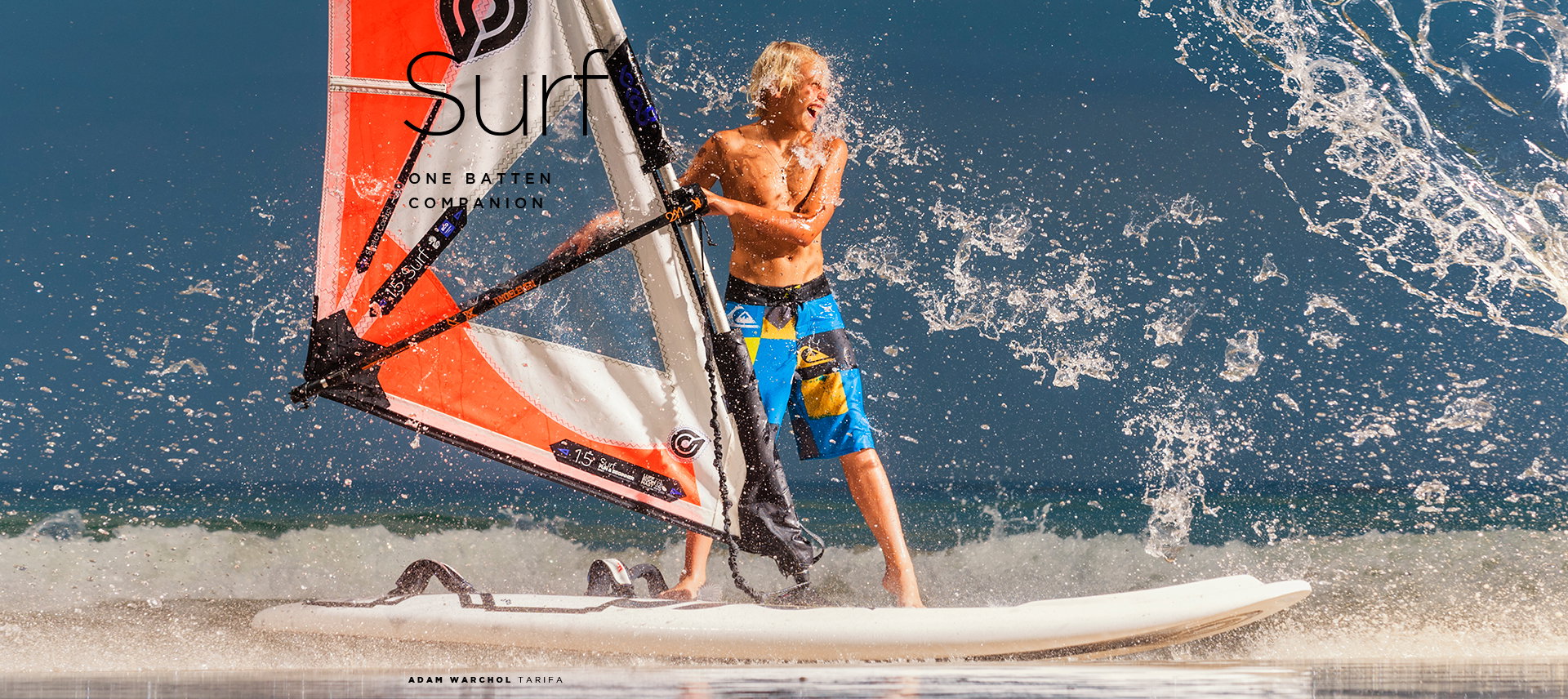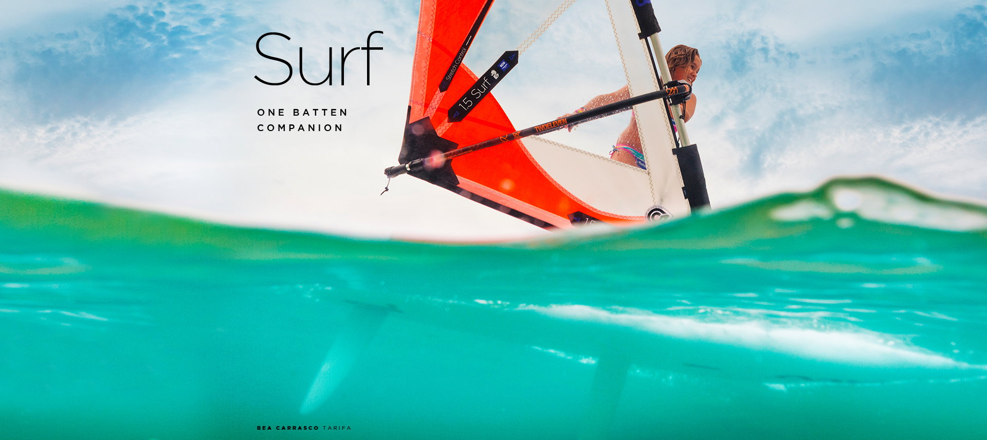 Mateo Cano: “The Surf is the classic traditional trainer sail. Incredibly durable, perfect for beginners everywhere, or just an excellent sail for cruising on a big board in light wind.”